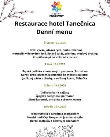 Velikonoční menu v restauraci hotelu Tanečnica
