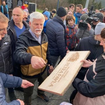 prezident republiky Petr Pavel, absolvoval včera plánovanou návštěvu Pusteven a kromě prohlídky sochy Radegasta navštívil například i restauraci Libušín.